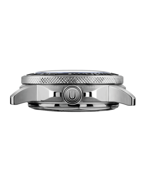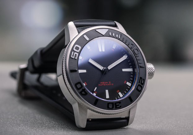 Modern and robust, the Aqua 316L Steel is created with one goal in mind: To reflect an understated style in the urbanites. The 43mm case diameter is designed for bigger wrists or those who prefer a larger dial and case. On the black dial are red numerals snugged just below the indices for easy reference. Housed within the scratch-resistant sapphire crystal is a Japanese TMI NH35A Automatic Winding Mechanism with a 42-hour power reserve.