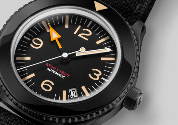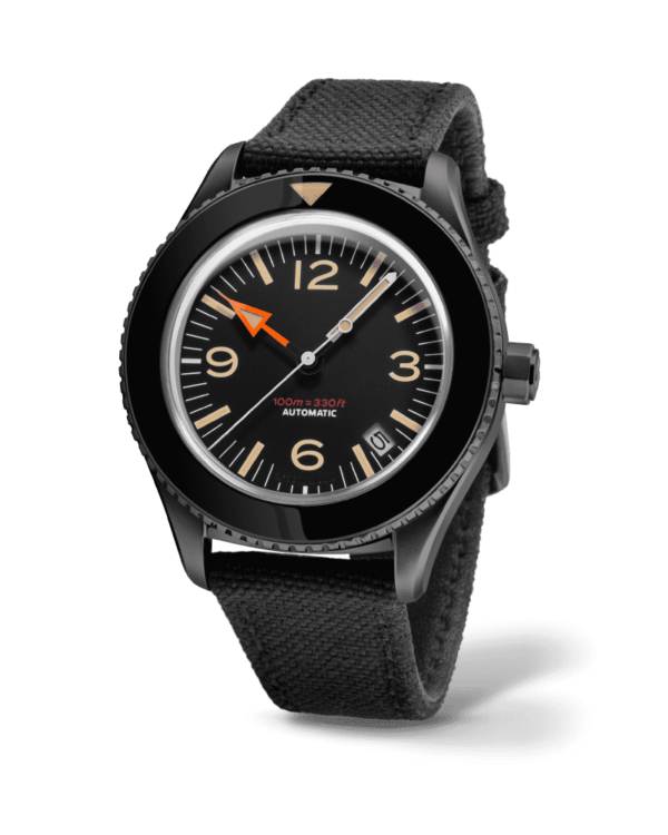 A gutsy, good-looking tool watch that combines high-performance functionality with vintage aesthetics. Featuring an iconic orange hour hand, ultra-domed plexi crystal, sterile bezel and black NATO strap, this 40mm Basecamp “Blackout” is designed with the style, comfort and durability for everyday wear. Yes, you may have found the best affordable automatic watch under 500 USD out there!