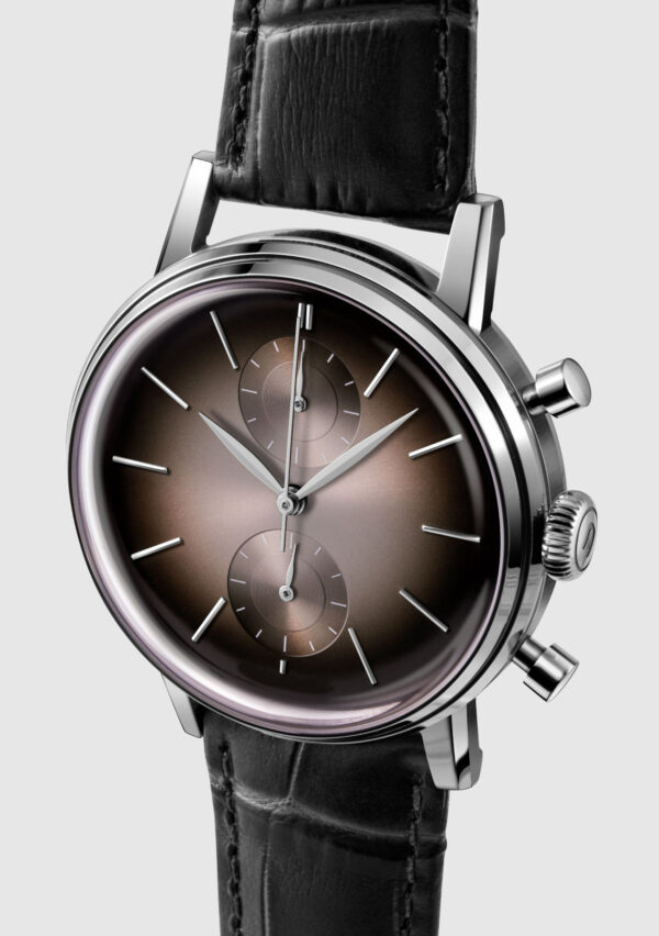 Sensual, seductive and sublime. Let the gorgeous ombré hues of this smoky 40mm dress timepiece reflect your mood – are you more like Neptune or Mercury, or perhaps an Eclipse? Its elegant fumé dial is carefully crafted in our lab through 12 labour-intensive steps, resulting in a classic watch under 300 USD: the type of watch to wear with a suit, when grown-ups come out to play.