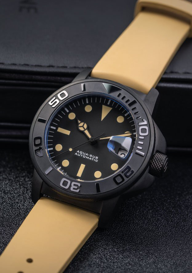 Hit the streets with the Aqua PVD Black, a trendy and hefty diver watch with a touch of vintage-inspired elements. Designed for the bigger wrists, the 43mm case diameter makes this watch a perfect fashion accessory for those who prefer a larger dial and case. Housed within the scratch-resistant sapphire crystal is a Japanese TMI NH35A Automatic Winding Mechanism with a 42-hour power reserve.